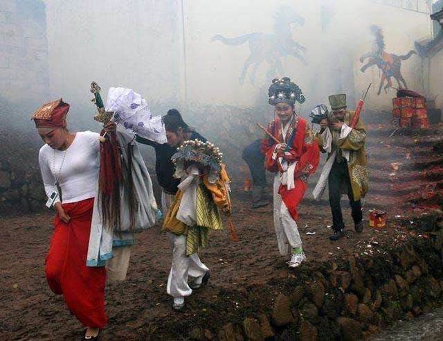 突然勺子叫,們朝里,挖到個雕,打,個縮縮脖子古裝,端削得很尖,插太歲,就像吸取能量似。雕掂里很,里面好像灌汁。