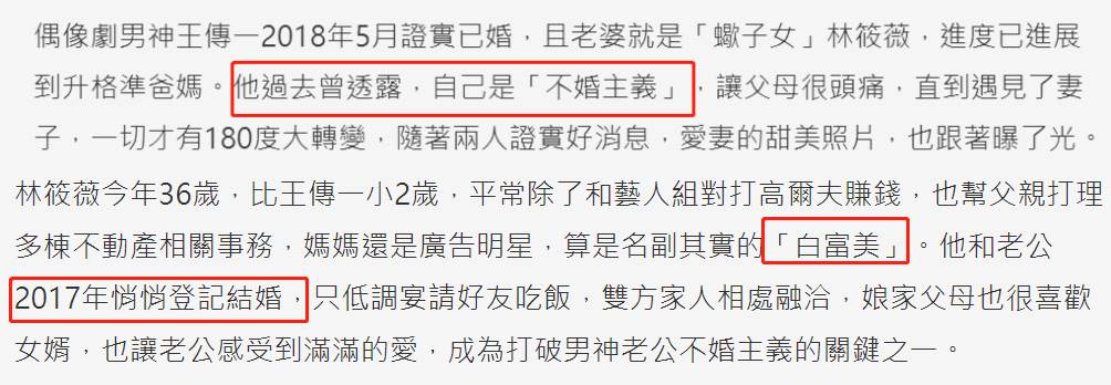 王傳一曾說過,自己是不婚主義,讓父母很是頭痛。直到遇上妻子,他對婚姻的態度才發生了大改變。