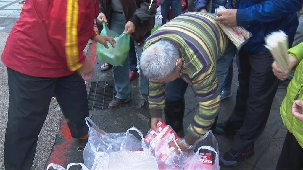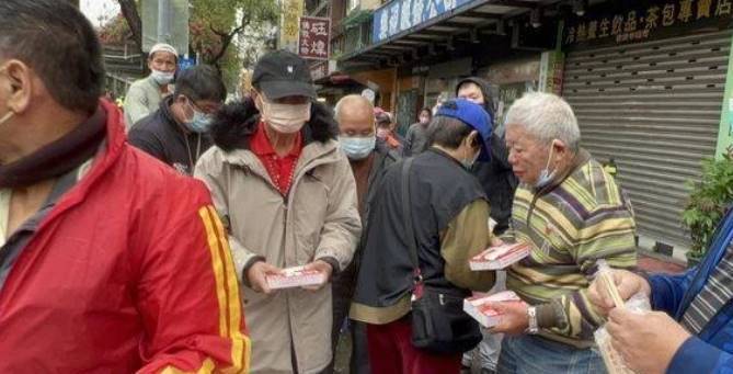 目前已經在台北市萬華龍山寺捷運站發放發放5百個控肉便當、1000顆橘子和150顆包子,