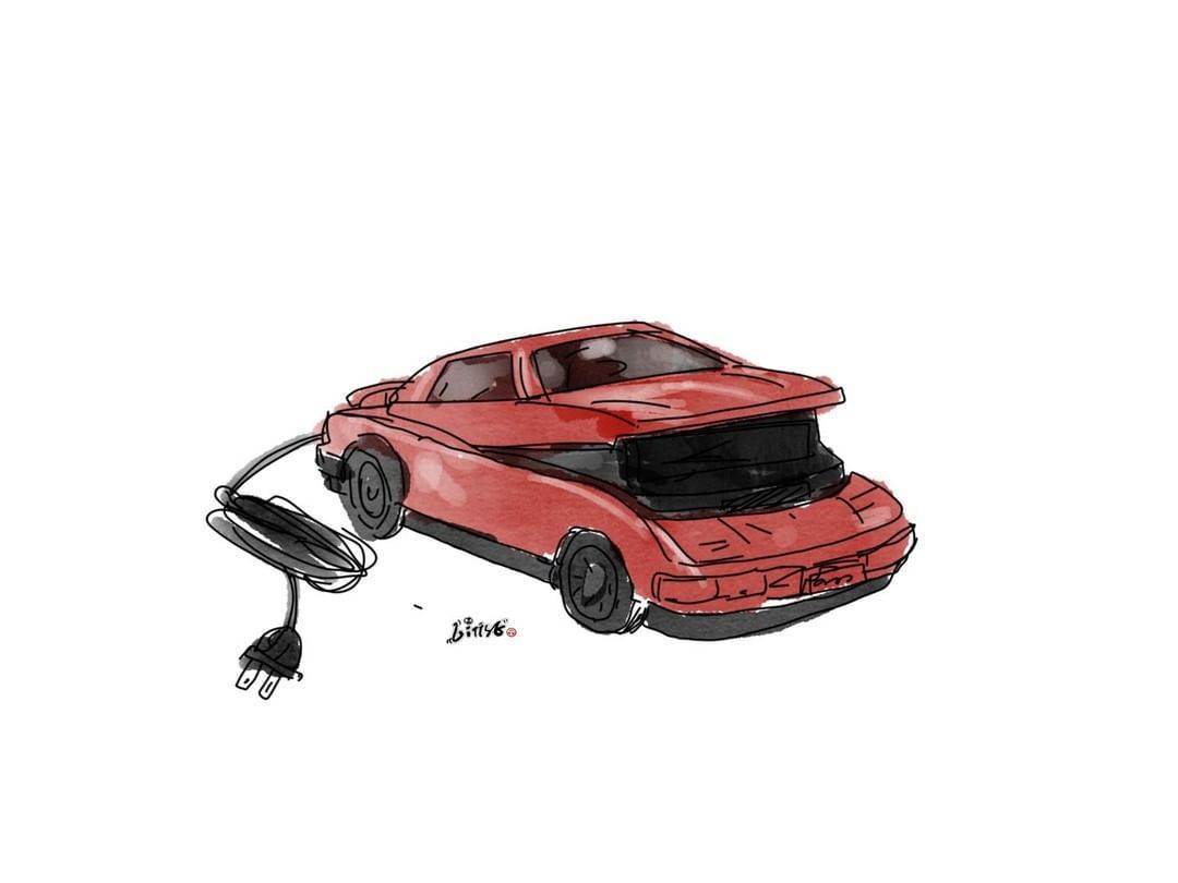 乍看之下是紅色的小汽車,不過其實是VHS迴帶機,把錄影帶[插·入]就可以咖咖咖地回到起點,在錄影帶普及時是家家必備的實用小物~