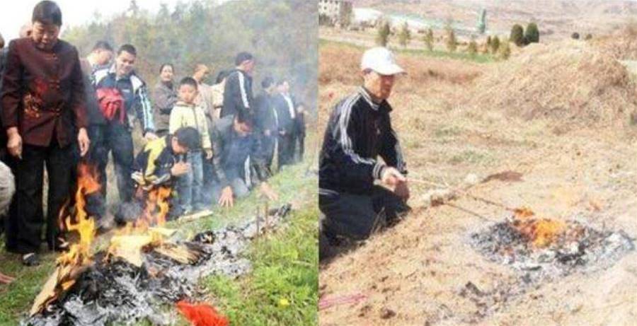 「不知道,我看他和我爺爺奶奶是『鄰居』,就順帶給他燒點吧。」傻小子又憨憨地笑道。