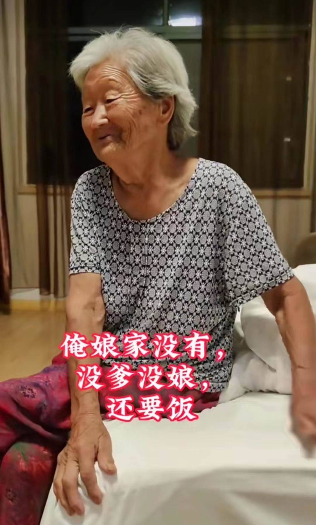 其實老太太從小無父無母,吃了很多苦,但是她一直都很樂觀,知足常樂,