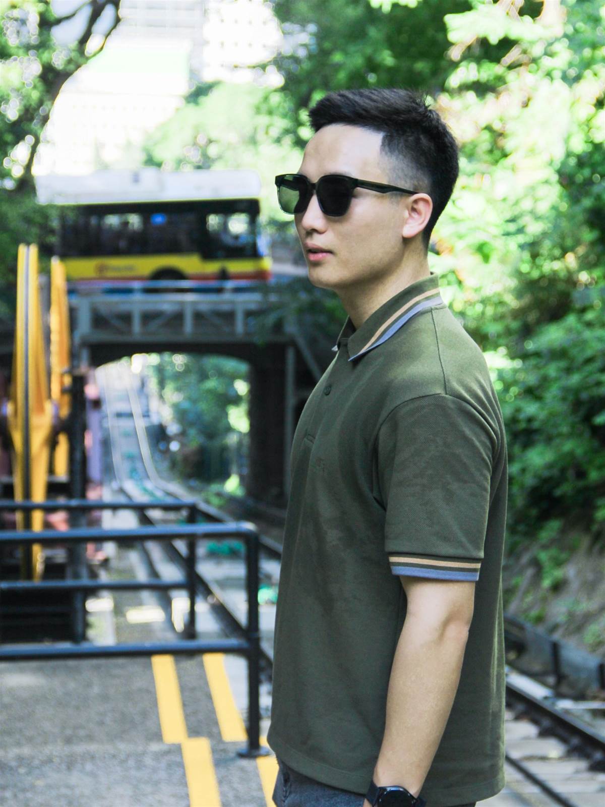 不得不說沿途的機位很多也很出片,經過纜車中心后一路往上走,既能遠眺維港摩天輪?、俯瞰中環大樓?,也能近距離和纜車?合影