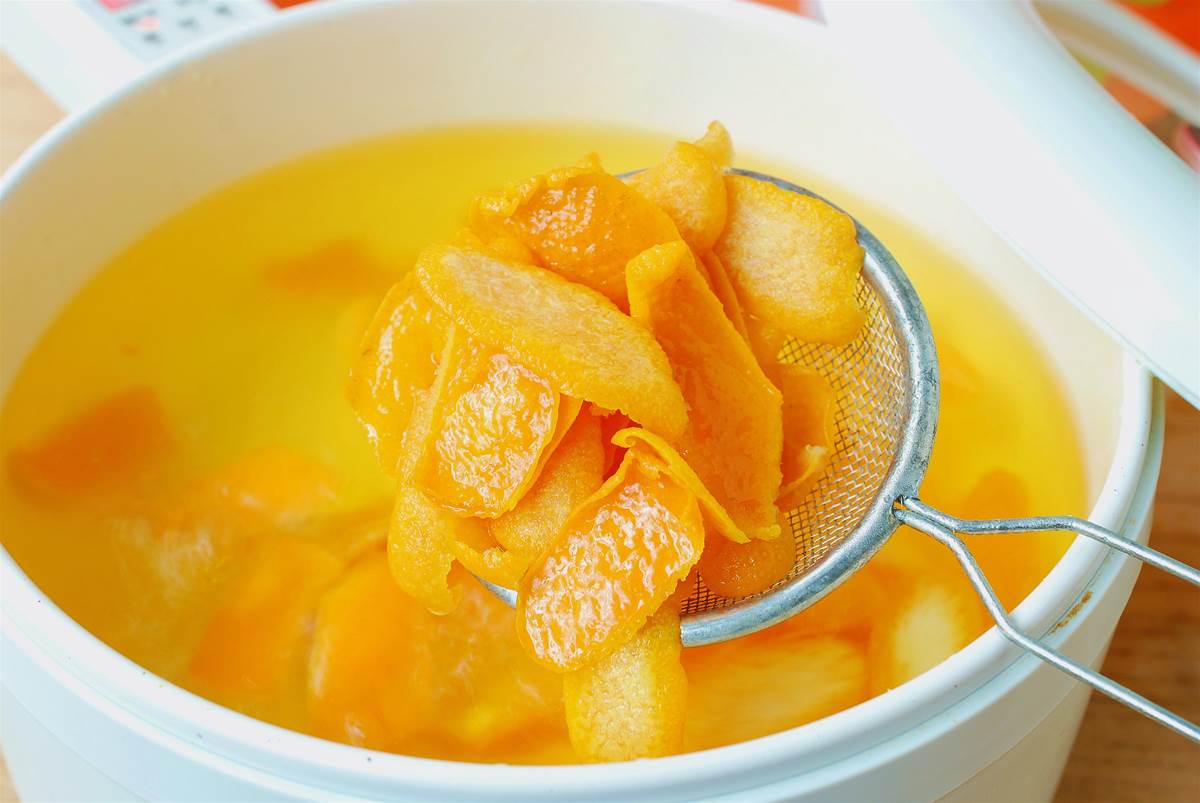 這麼新鮮的橙子皮做啥呢?橙子皮洗一洗,加個茶包鍋里一扔,暖胃又暖身。還可以補充維生素C、促進消化、化痰止咳、清熱去火,作用挺多呢。酸酸甜甜,非常好喝,既不浪費食材,又得到了許多好處。