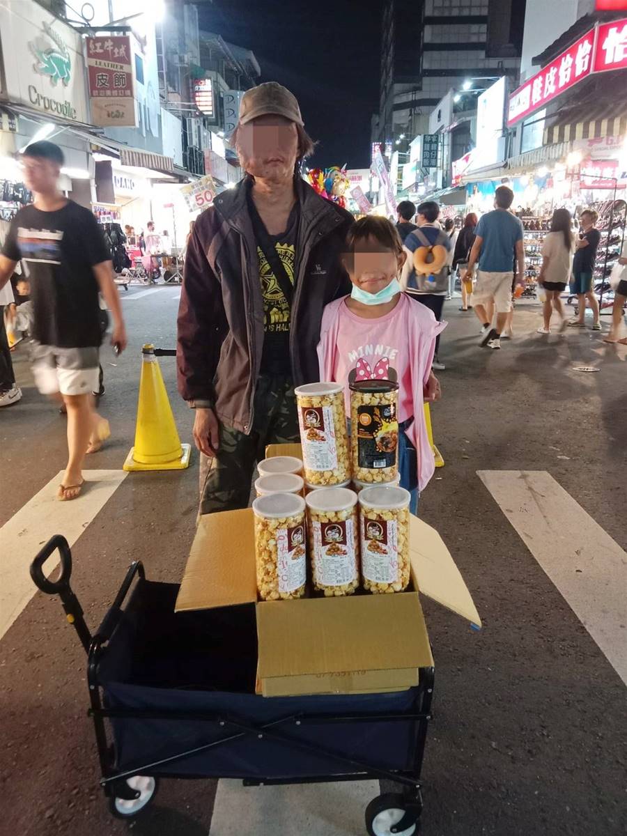 因此才會帶著孩子在夜市擺攤,販售共8種口味爆米花,每罐售價百元,希望靠自己的力量維持家計、