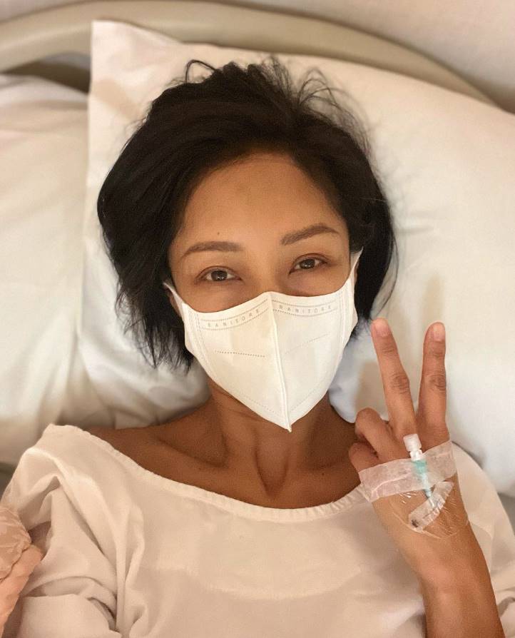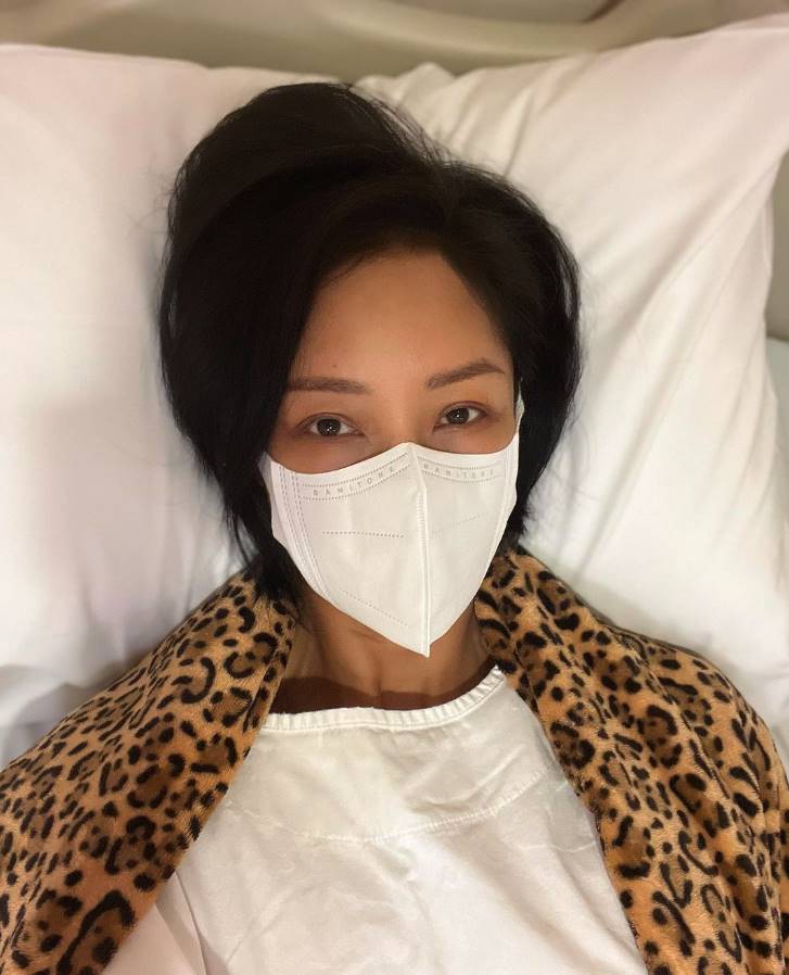 昨(24)日中午,她無預警在IG發出一張躺病床照片,只見她左手插著點滴,戴著口罩、面部蠟黃,看起來相當憔悴。她無奈地表示,「在醫院的一天,謝謝護士送了非常時尚的毯子讓我保暖,祝大家身體健康」,並在另一張自拍中比起V手勢,向粉絲報平安,「Don’t worry ! I’m fine! 神智清醒!好快可以出院」。