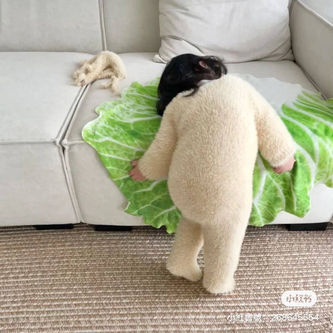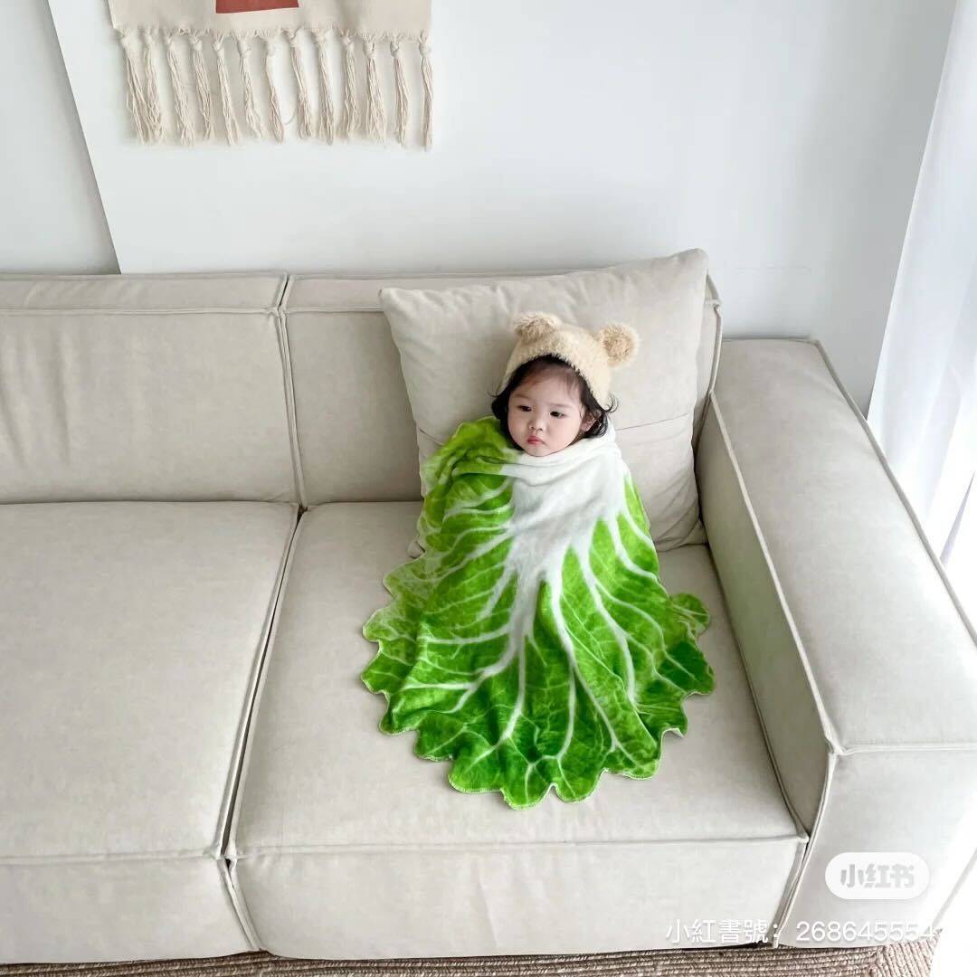 小紅書賬號「暖暖的小時光」近期就PO出自家女兒,蓋著一款白菜被子的圖文爆紅全網,看到畫面上躺在沙發上的小女娃,身上有著一條翠綠+白色的白菜葉子,乍看之下真的會有種蔬菜寶寶感,不說還以為自己在火鍋店~
