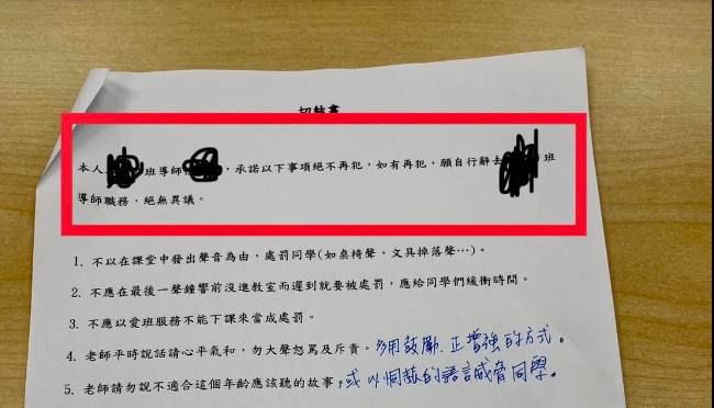 而原PO爸爸表示,這樣的切結書不僅讓他感到驚訝,之後校方處理方式也是一樣,據說最後校方有拿給老師看,雖然老師沒簽名但口頭承諾,立切結書的家長如果再次申訴會處置老師,這樣舉動讓原PO無奈道:「一年級已經逼退一位老師了,希望校方處置方式有所改變,想捍衛女兒受教權」。