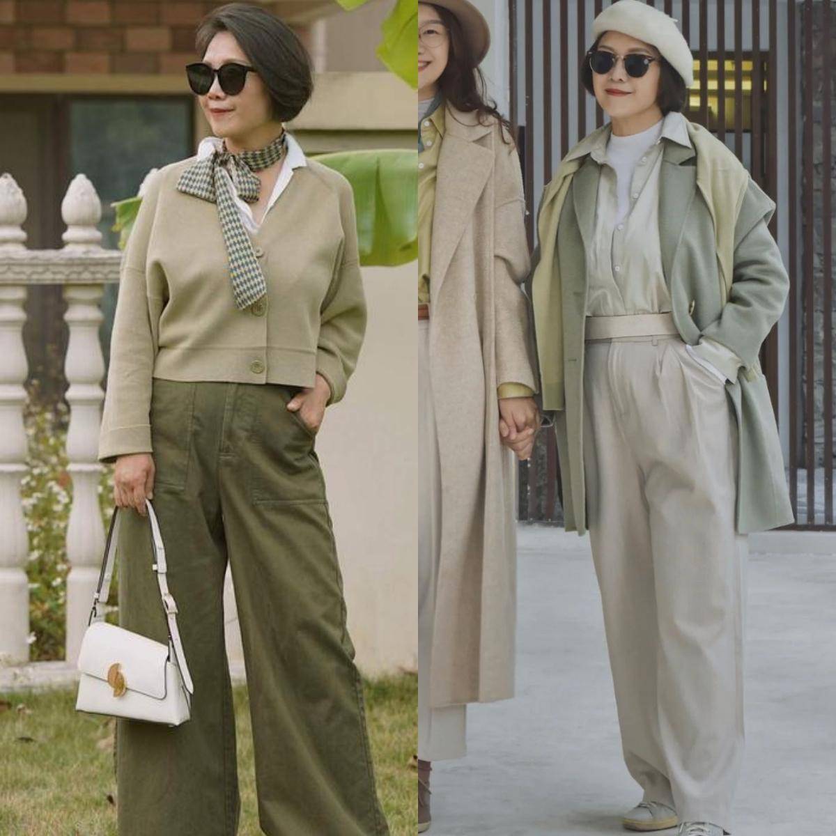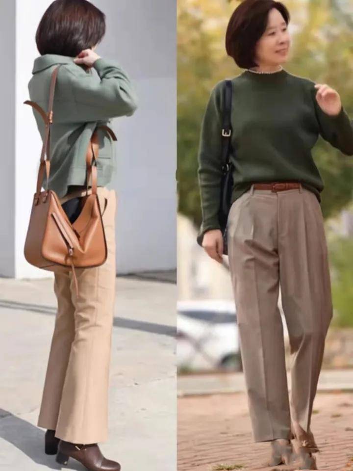 低飽和度彩色繫上衣+深棕色: 保持穩重氣質,盡顯優雅。