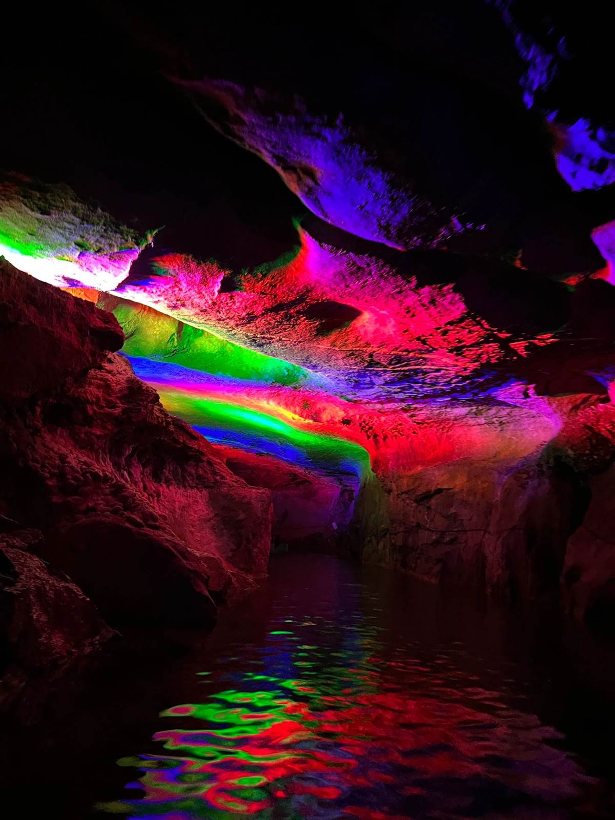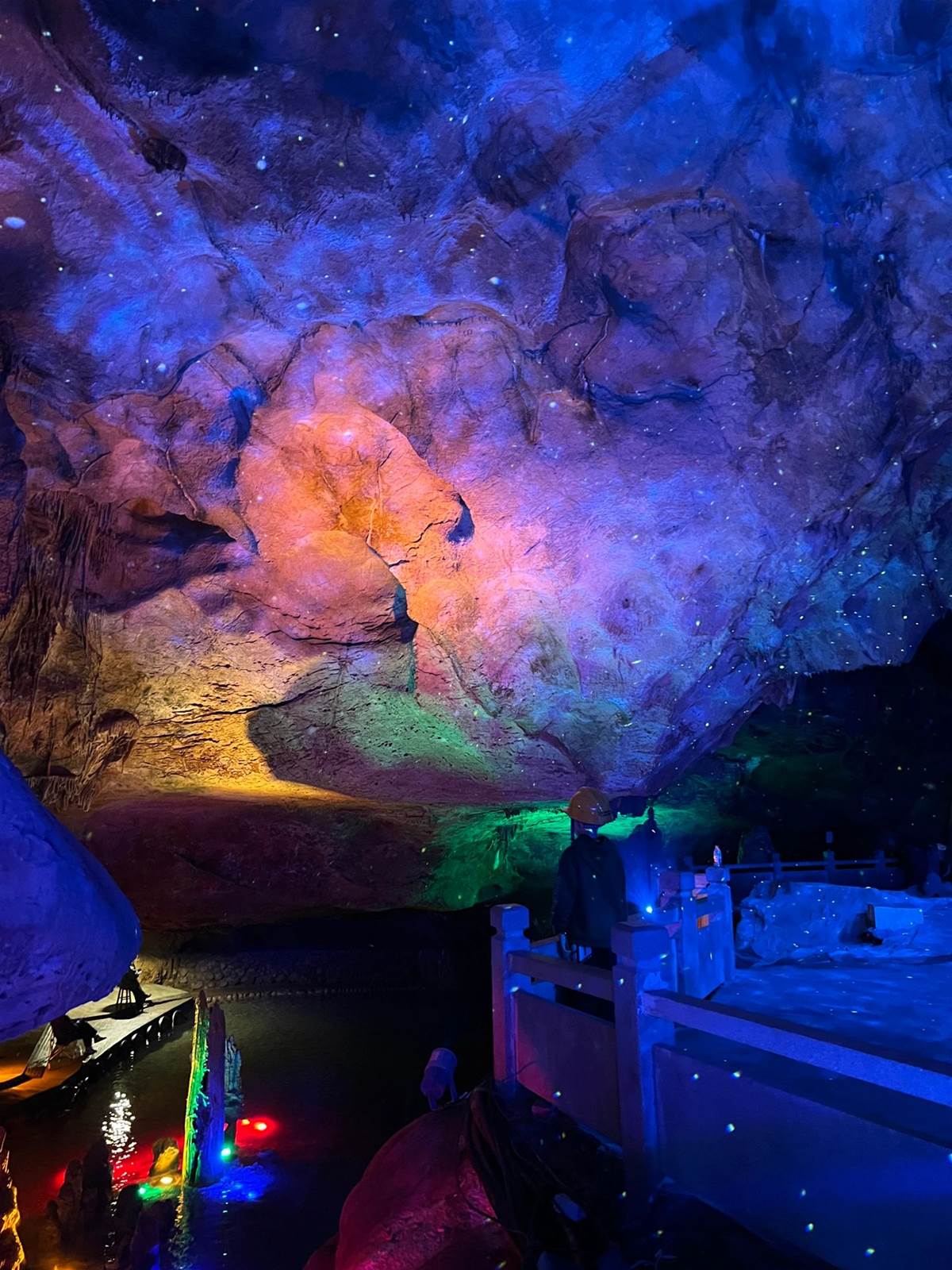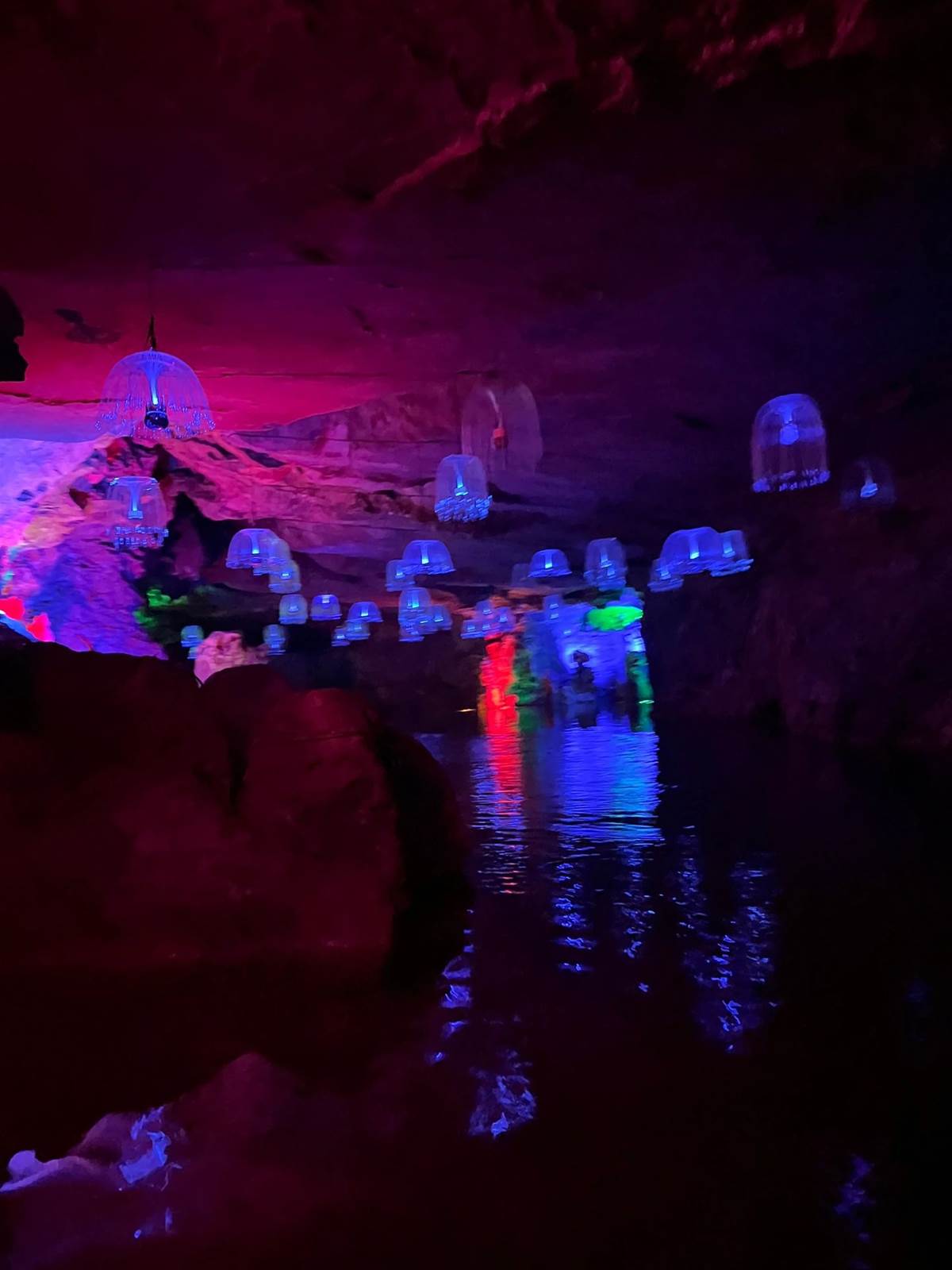 坐船進入,里面的燈光非常好看,感嘆一下大自然的鬼斧神工,值得一看!