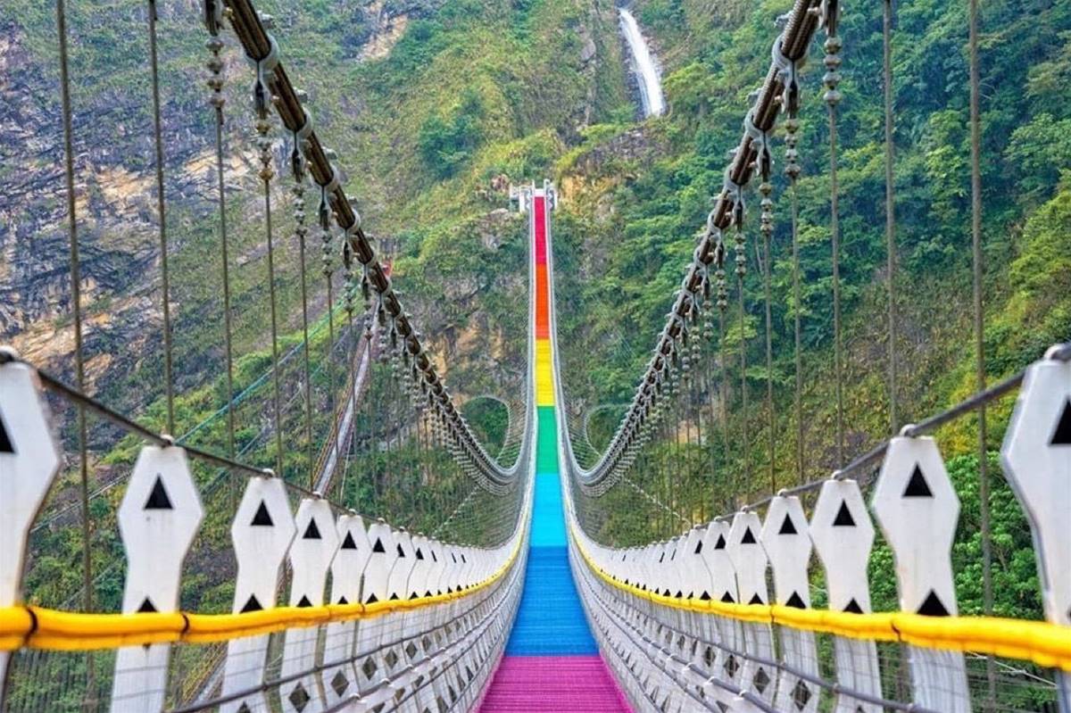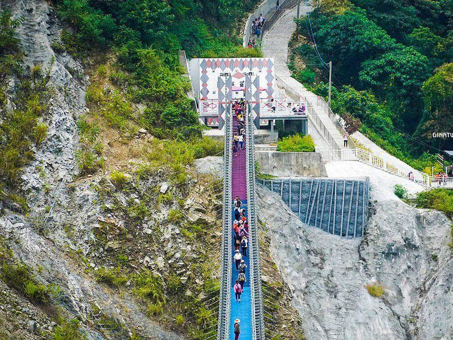 吊橋的設計很有趣,有彩虹?的7種顏色組成。每隔50公尺換一個顏色,而且還是階梯式的設計,有種走向天堂的夢幻感覺!
