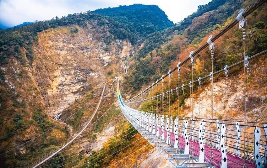 在 台灣南投縣的深山里,隱藏著一條號稱是台灣最長的彩虹吊橋【雙龍瀑布水源吊橋】!它全長342米,離地面足足有30層樓這麼高!