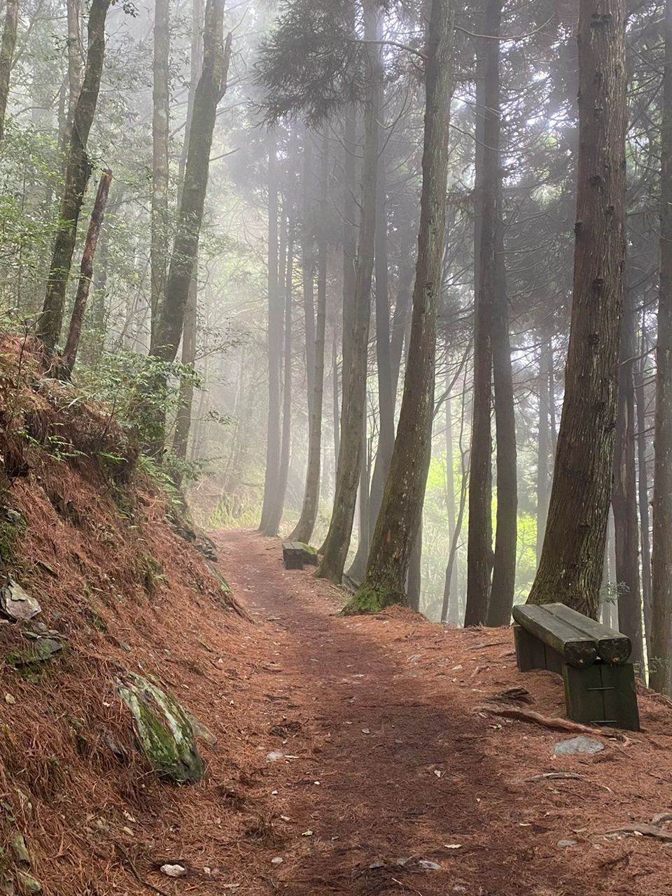 早上七點出門,盤山道要走一個多小時,很贊很舒緩,風景很美。上午晴天,過了中午就開始濃霧彌漫了。車可以開到步道,徒步路線單程四公里。沒有太多坡度,還蠻輕松的。