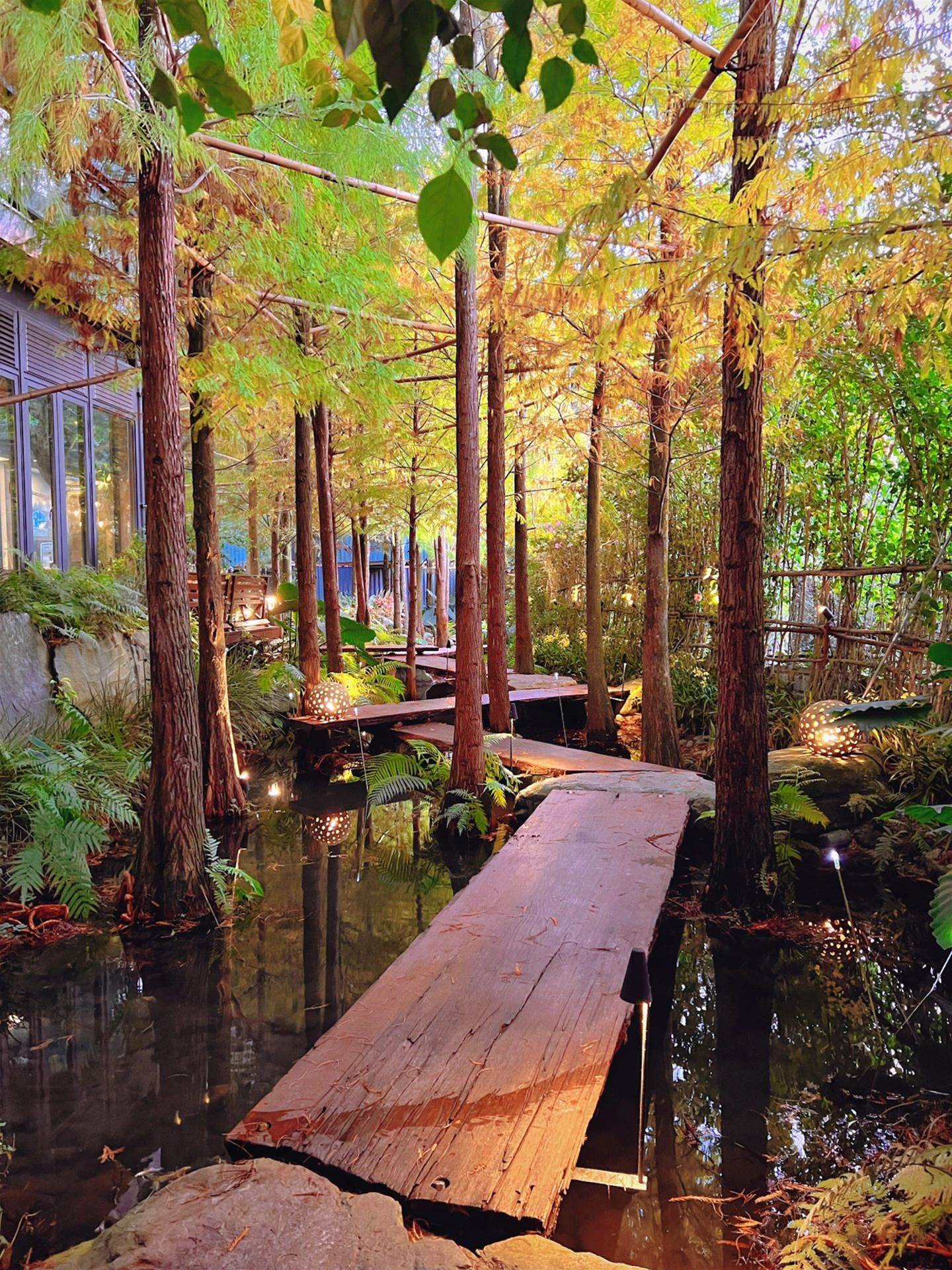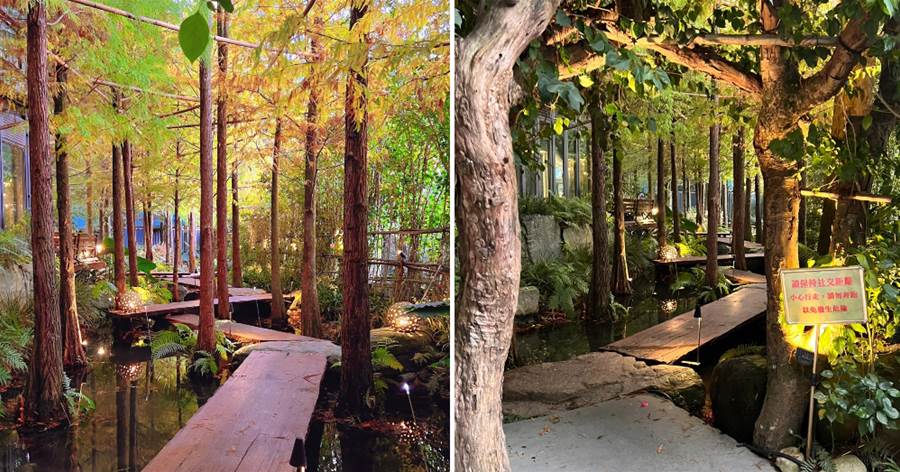 有落羽松造景、錦鯉魚、2隻山羊(都可以餵)