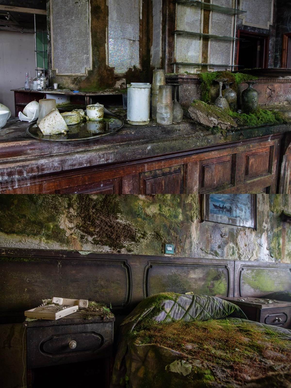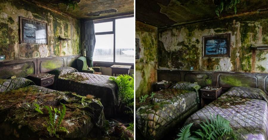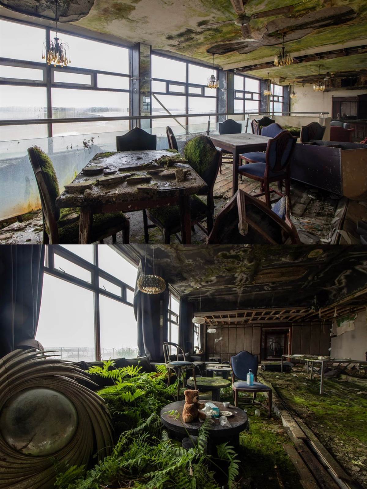 ?由于地處濕潤的海邊,一間又一間的房間充滿了綠色,大多數傢俱依舊存在雖然早就被侵蝕破敗,依舊與入侵的綠植們夠成了一幅幅令人驚訝的「油畫」