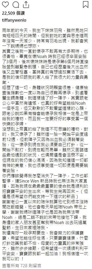 消息傳出後,讓不少網友都紛紛獻上祝福,除了恭喜也為她肚子裡面的孩子祈福:「上天會保佑妳們母子的!」、「一切都會順利,為妳發願!」她也直呼,這個孩子是上帝給她的禮物,會努力保護好孩子,只要為了寶寶,無論是吃藥還是打針都不怕,也很感謝醫療人員,跟家人的照顧。