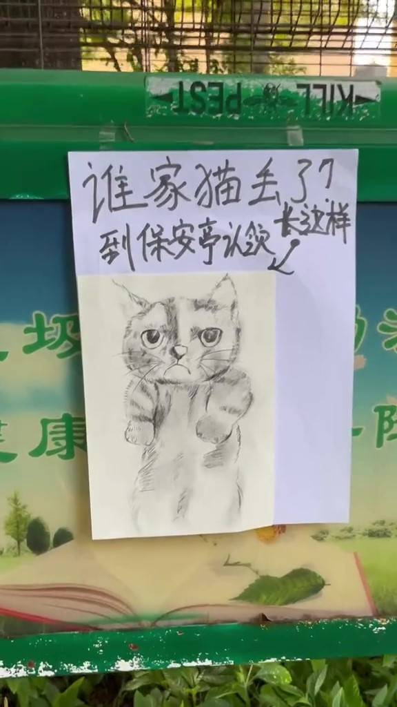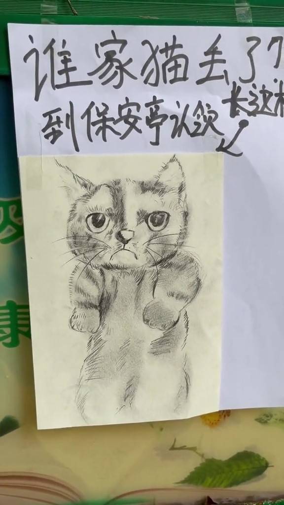 來自中國的鏟屎官「小五他爹」經常在網路上分享家中貓貓的日常~這天小五爹就發現小五疑似偷跑出門,連忙外出尋找,幸好在公告欄就看到了一張「失貓招領」,上頭寫著:「誰家貓丟了?到保安亭認領。長這樣↓」並附上一張略為潦草的貓咪素描畫像,而小五爹一看就認出貓來了,是小五啊~(咦?確定嗎?)