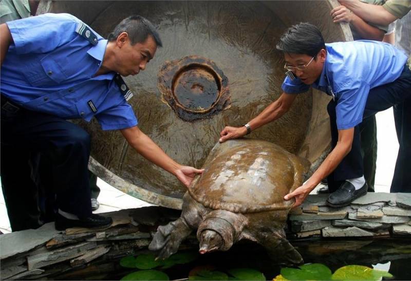 于是,他們將這只大黿帶到當地的水庫,讓它重新回歸大自然。而就在準備放生的時候,令人驚嘆的一幕發生了!