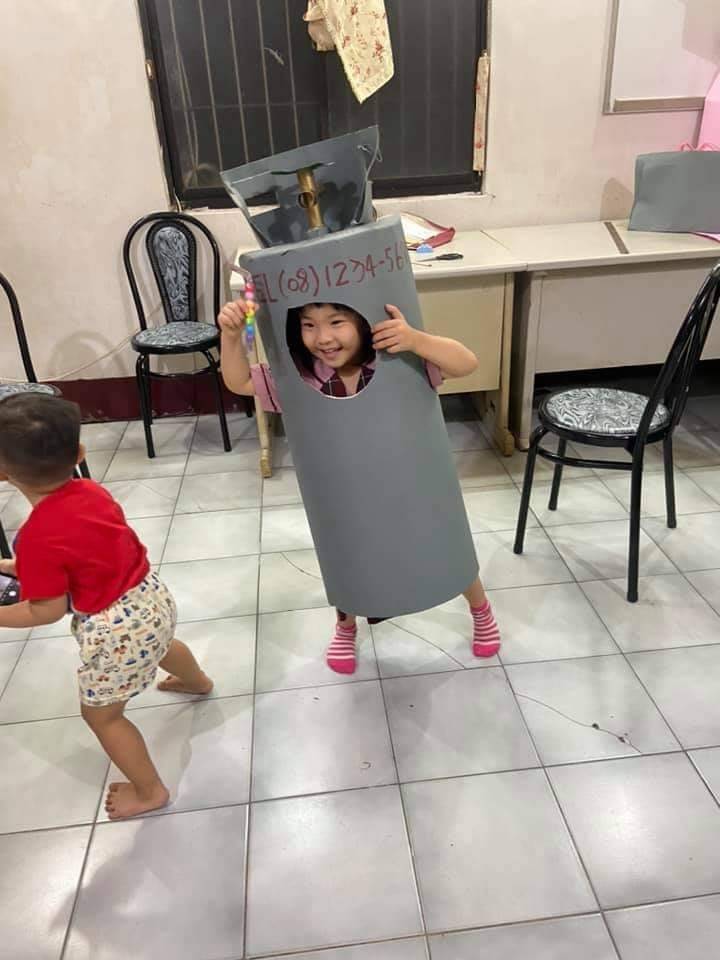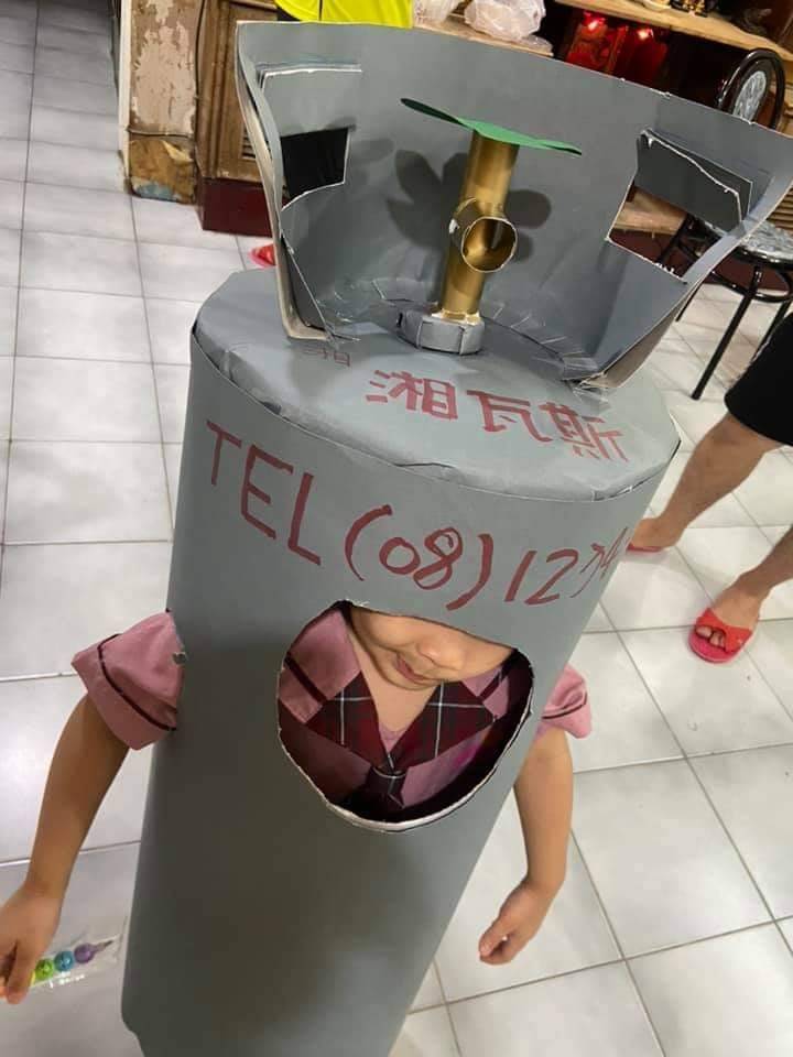 除了這位小女孩的萬聖裝扮令人印象深刻以外,前幾天也有一位網友在臉書分享寶貝女兒的特別裝扮!原來原PO的女兒也選擇不扮成公主,而是決定走一個「Local路線」,變身成一個巨大的灰色瓦斯桶!