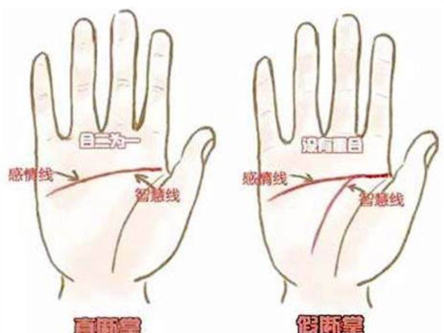 只有三條線的起點相互交接,感情線和智慧線合二為一,形成橫切過手掌的直線,才是真正的斷掌。