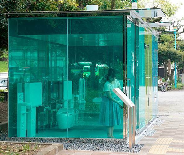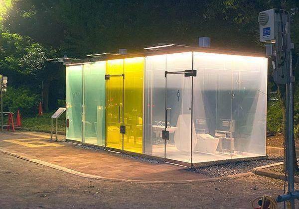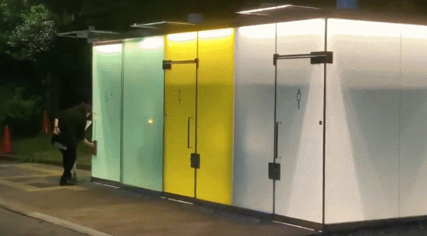 對于這個問題,日本澀谷的一間公共廁所就想出了解決方法:3個坑位都是透明的,等鎖門後,廁所會自動變成霧面,而如果使用該坑位的人30分鐘之後還沒有出來,坑位的霧面玻璃將自動變成透明的普通玻璃。