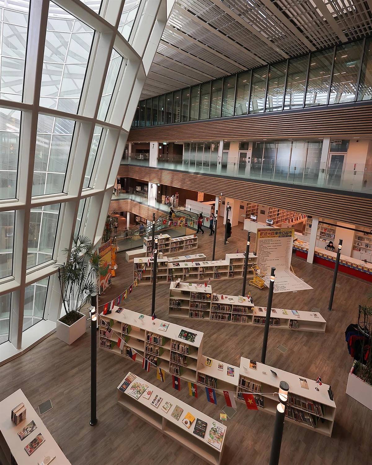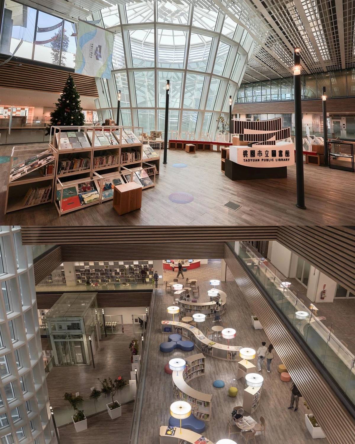 開幕了,終于開幕了,灑花身為桃園人最期待的就是桃園總圖書館建設常常經過附近就會對這棟外觀直直瞧走進裡面最大的特色應該就是以「生命樹」為概念的設計