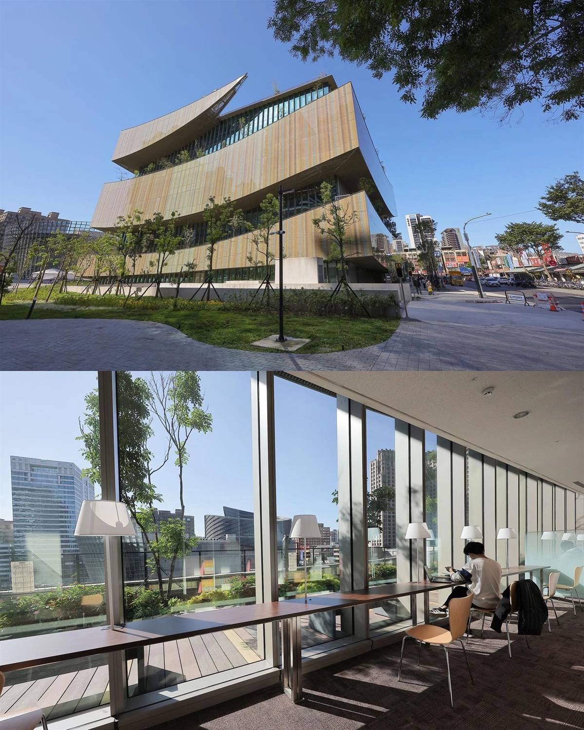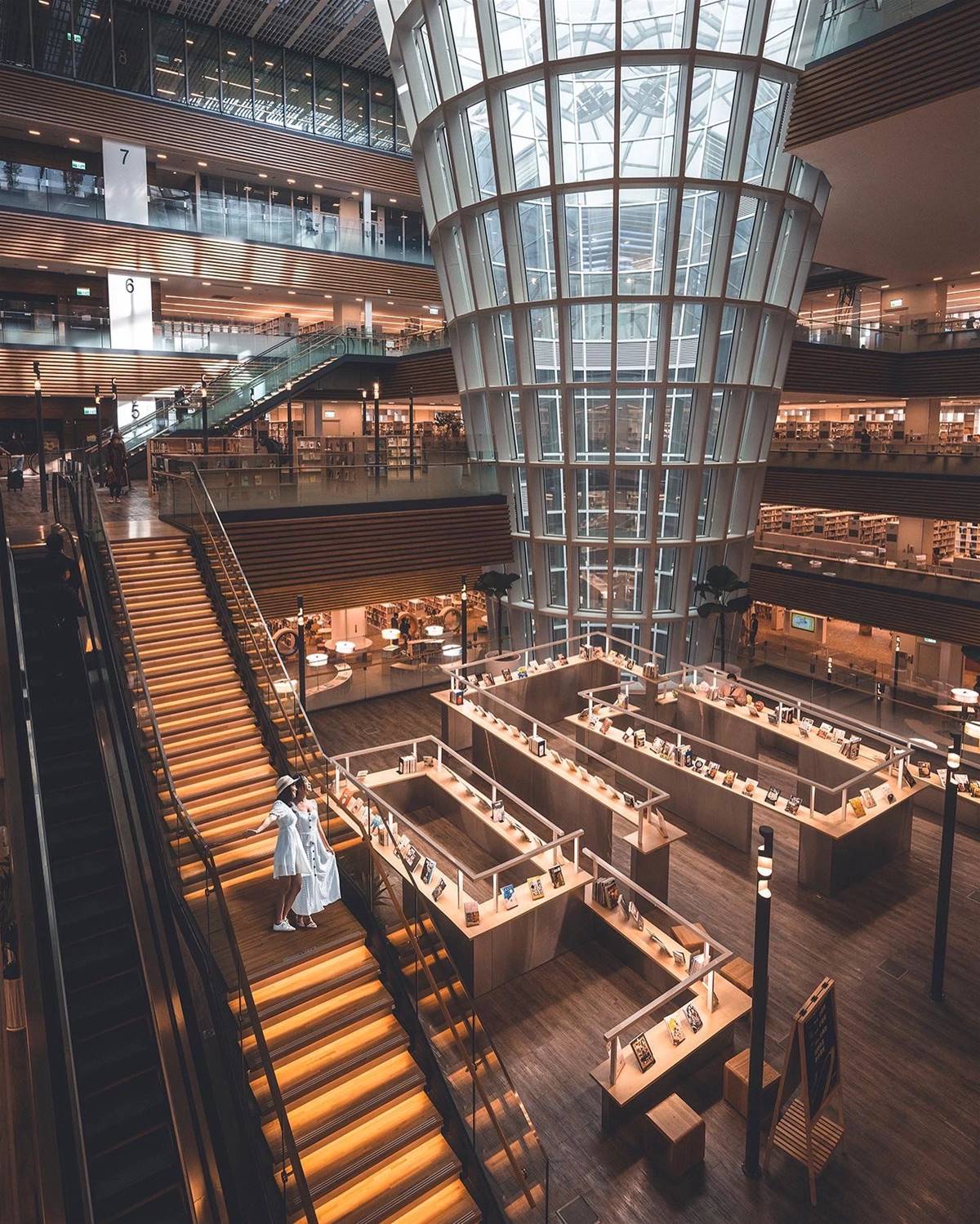 自然的採光風井讓這座圖書館充滿活力裡面不只是一座圖書館還結合電影院、書店、美食、展覽的多元空間