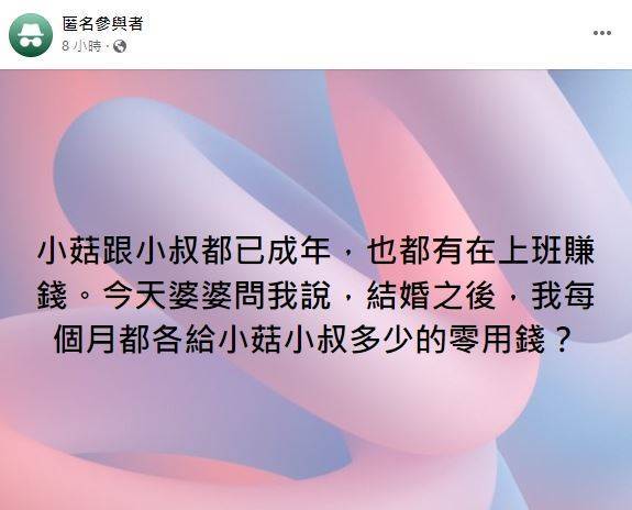 自己尚未嫁進婆家,卻被準婆婆要求「給小姑、小叔零用錢」,讓她覺得相當荒謬、無法理解...