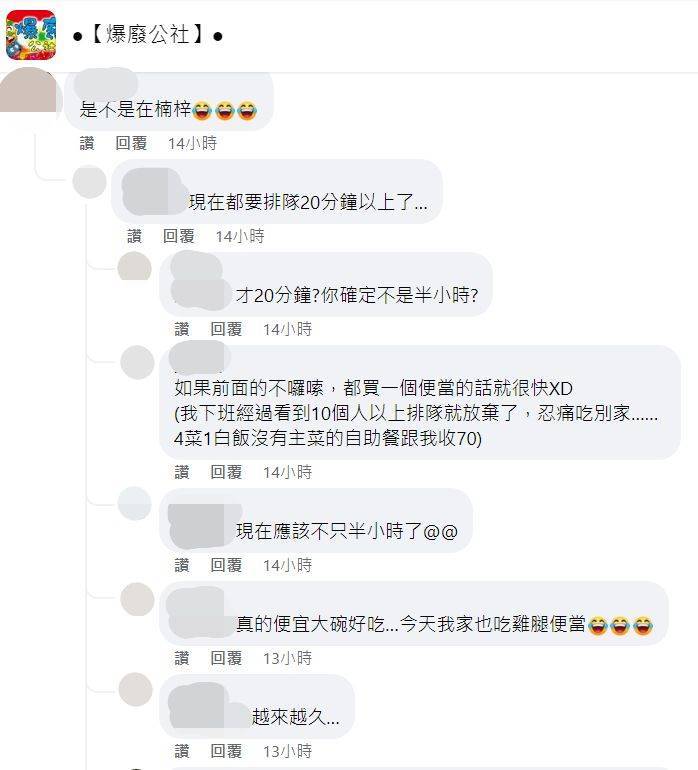 雖然也有不少網友認為原Po只是在胡扯,但留言區中卻也看得到不少在地人推薦的超便宜便當店,而最多人猜測原Po巧遇到佛心店家,可能位于高雄楠梓,平時光是排隊就要等20分鐘或半小時以上,「真的便宜大碗又好吃,今天我家也吃雞腿便當」、「下班經過看到10個人以上排隊就放棄了,忍痛吃別家」。
