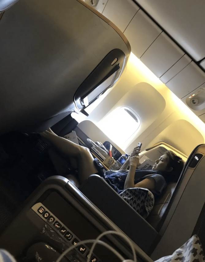 不過在透過演唱會見面之前,先前一位網友就先在飛機上搶先遇到孫燕姿!當時該網友搭乘某班機的頭等艙,沒想到附近座位居然坐的就是孫燕姿,只見她穿著藍色T恤與黑色短褲,穿著相當輕便隨興,且素顏的她十分清秀,完全沒有歲月的痕跡。