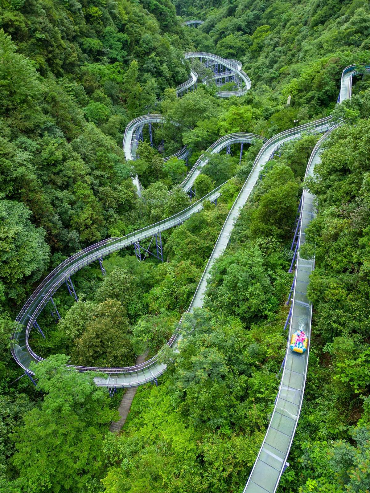 這個是景區的招牌項目,超長的玻璃滑道,總長約4公里長,落差高達800米,10分鐘的漂流時長。從山上直沖而下,真的是江浙滬漂流的天花板,驚險刺激。