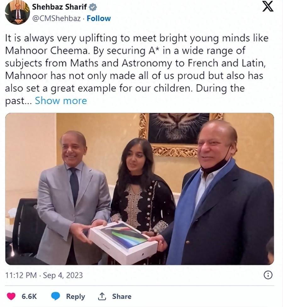 今年九月,巴基斯坦總理夏巴茲·謝里夫特意抽空接見了一位16歲少女,Mahnoor Cheema。