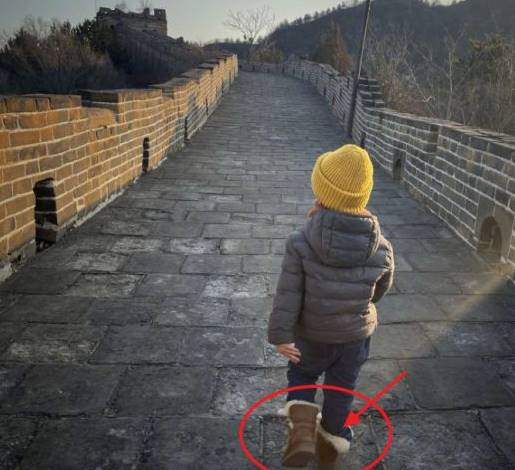 孫莉一家人在小兒子出生那年的冬天也爬了一次長城,當時弟弟年齡太小不能出遠門,拍全家福的時候,黃磊孫莉和兩個女兒都穿棕色雪地靴,就差弟弟的加入。時隔3年,孫莉又讓兒子穿上當時全家都喜歡的雪地棉,也算完成當時的小遺憾啦!細節太暖心。