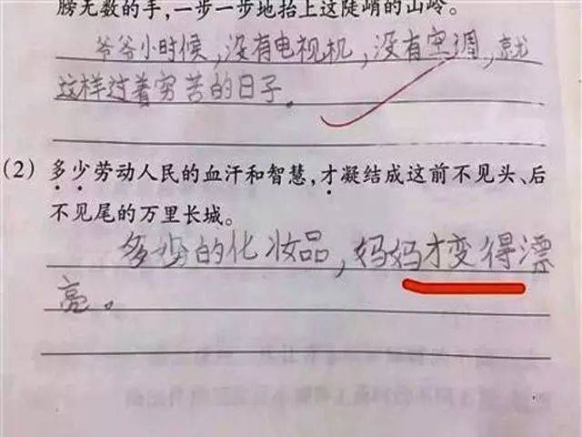 比如這「多少化妝品,才能讓媽媽變美」。這一下,我都替他的媽媽捏了一把冷汗,不知道他媽媽看了會是什麼反應。我猜,這位同學回家后,應該是被追著打的節奏吧?