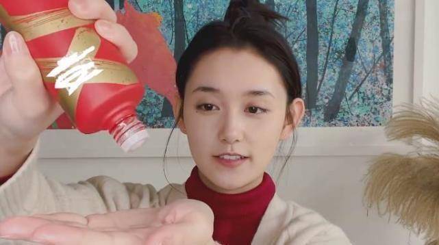隨后蔣依依還把護膚水拍在自己的臉頰上面,眼睛一直望著鏡頭,表情略顯呆萌。