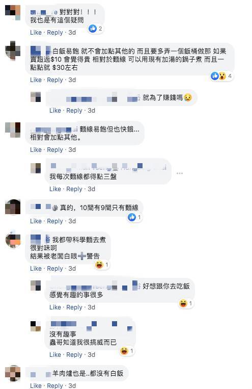 最後,甚至還有賣薑母鴨的老闆出面說,「我以前也覺得配白飯不錯吃所以有賣,結果根本乏人問津,都要自己吃完」。對此就有人分析,「薑母鴨其實不太算是正餐,比較偏向宵夜類的,所以一般都是吃巧不吃飽。」