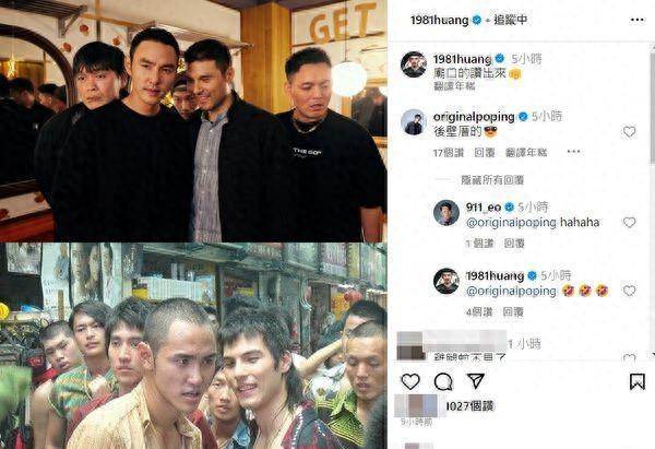 慶功宴上,阮經天找來電影《艋岬》「太子幫」鳳小岳、蔡昌憲、黃鐙輝、春風好兄弟,一群人開心相聚暢聊。期間,5人還逗趣還原當年《艋岬》劇照,各自按照位置擺出經典姿勢與表情,黃鐙輝事后更將對比照PO網:「廟口的贊出來。」