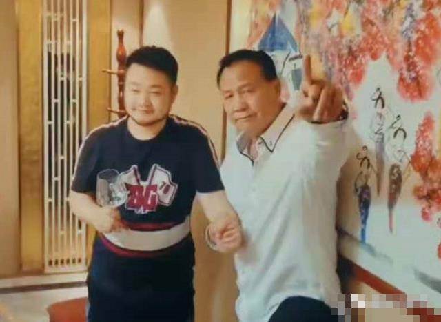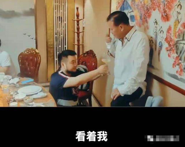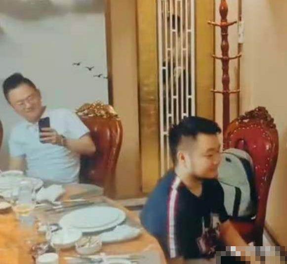 目測師徒倆身處某個酒局,包廂裝修得富麗堂皇,兩人座位上都擺著煙灰缸酒杯,周圍還有湊熱鬧的人拿手機拍照。