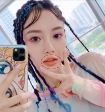 最后李小璐把手放下巴上,對鏡頭伸手比v擺造型,額頭兩片劉海很俏皮。不過這時大家也發現,李小璐因為厚涂口紅,變成了「香腸嘴」。尤其是下嘴唇因為口紅涂滿特別引人注意,審美越來越接近網紅標準,和以前拍戲的時候風格判若兩人,圈內很多女藝人都不敢涂這麼厚。