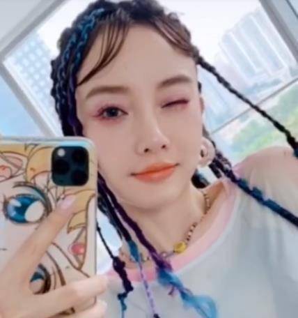 現在很多明星都學不會wink,李小璐倒是做的很自然,有一種天生的愛豆氣質,如果剛出道時嘗試去唱歌跳舞,現在的發展或許會大不同。當李小璐把鏡頭拉近,能看到她的眼妝非常明顯,這應該是最近很流行的「桃花妝」了,眉形和妝容都很上鏡,配合新髮型拍照效果還挺不錯。
