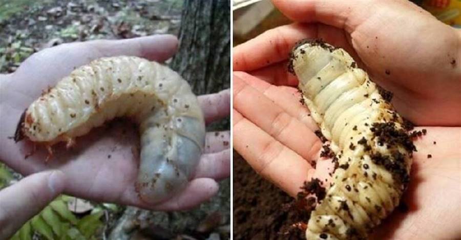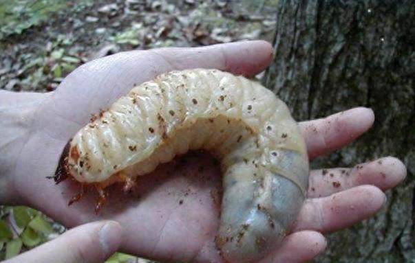 女子無意間在森林的府木堆里發現了一只古怪的白色巨型幼蟲。