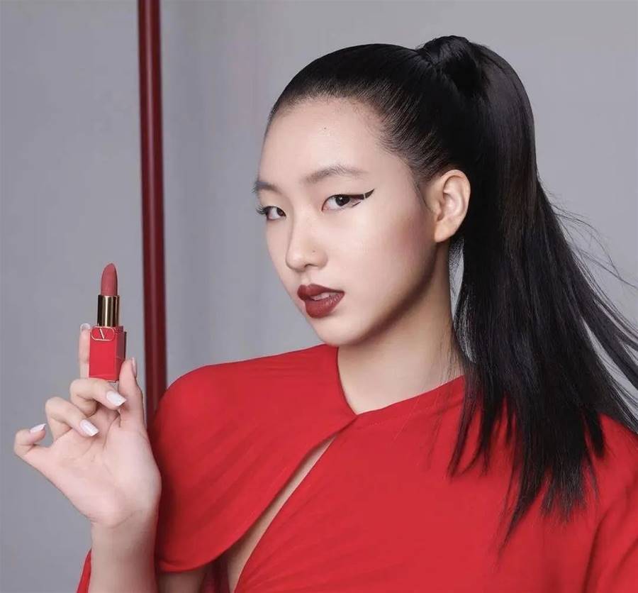 代言活動中,她一身中國紅的禮服配上扎著高高的馬尾,整個人看起來既美麗又時尚。