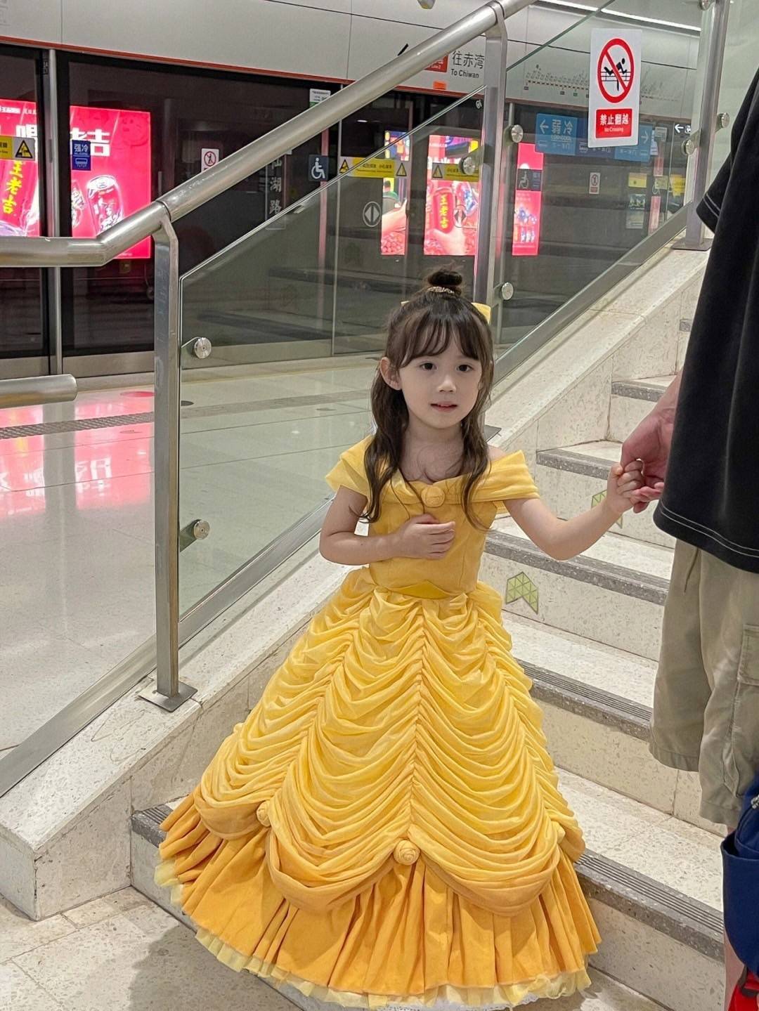走在捷運站的階梯上,看起來就像是要參加舞會一樣,超美背影簡直就是迪士尼公主來到現實中啦!