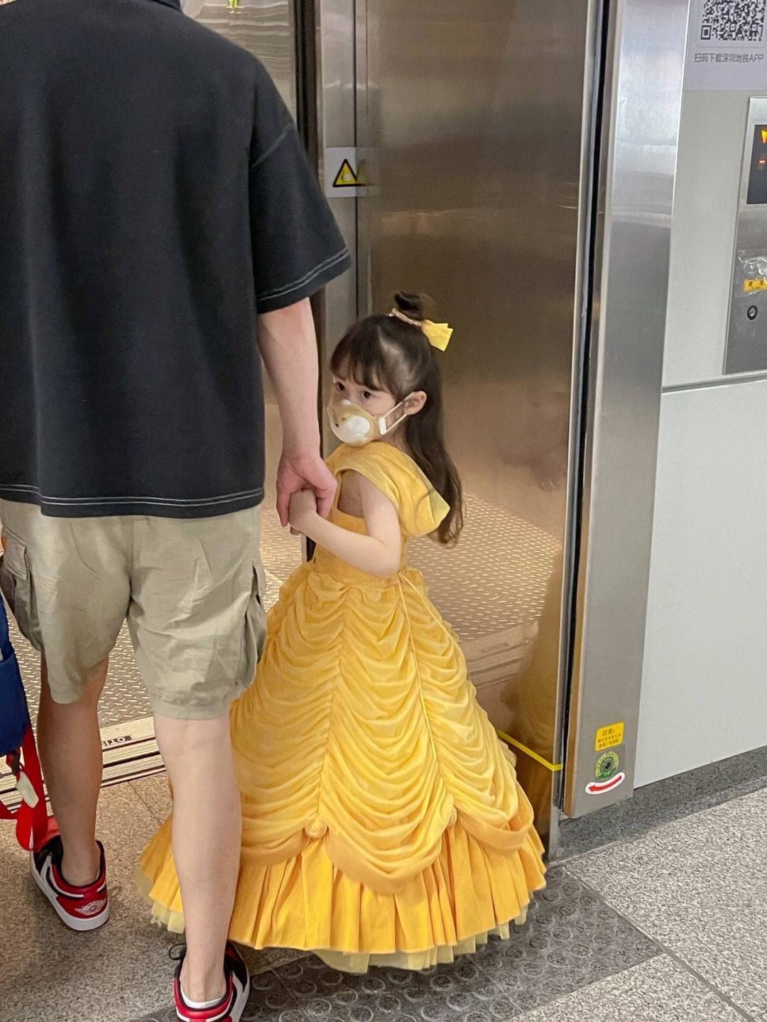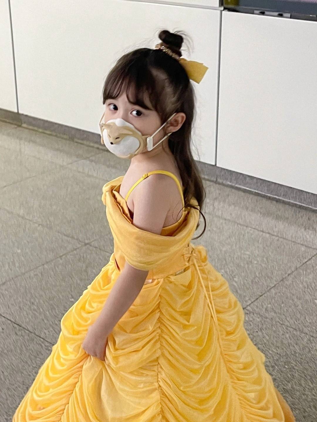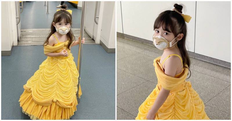 小紅書賬號@阿NO阿NO時不時會在上頭分享這位小女娃的變裝照片,其中下面這系列的貝兒公主搭車夢幻照更是引起話題,只見小女孩換上貝兒公主的黃色禮服,頭髮特地弄成甜美的公主頭,雖然戴著口罩,還是可以看出她可愛又精緻的小臉蛋。
