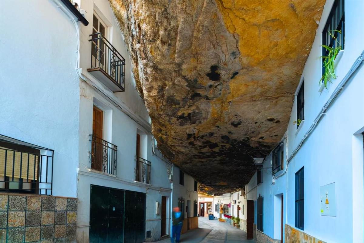 這個小鎮叫做賽特里爾,它位于西班牙南部的安達盧亞大區,最特別之處是,整個村莊被一塊巨大的石頭「壓」著,其實就是說小鎮上的居民在石頭上修建房屋,全部都陷在這個巨石之下,時間久了之后我們就看到了這幅模樣。