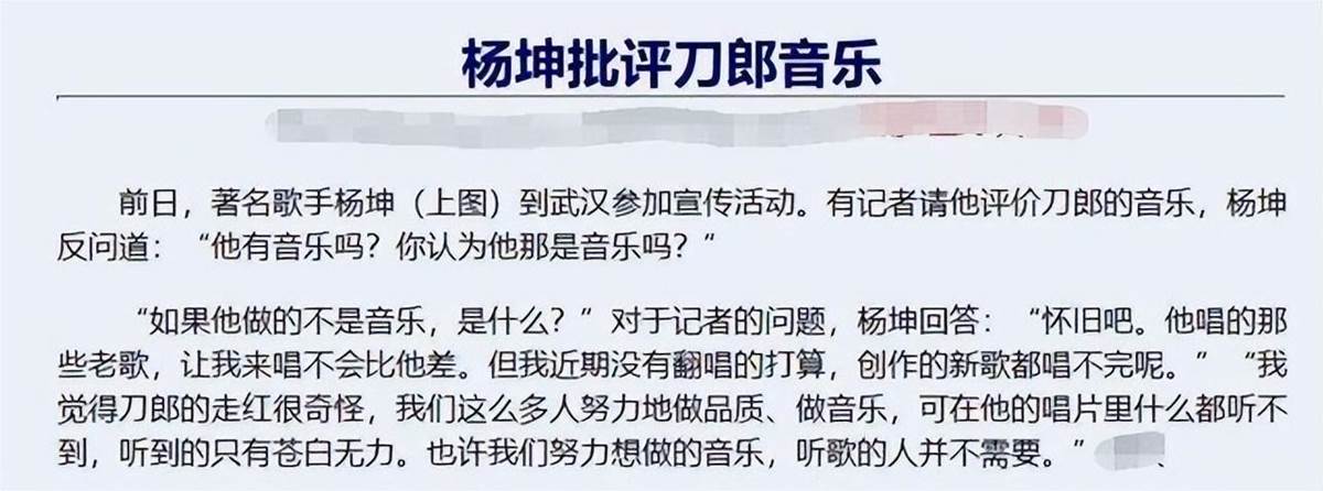 或許是認為自己的實力得到了認可,楊坤開始了自己的批判之路。