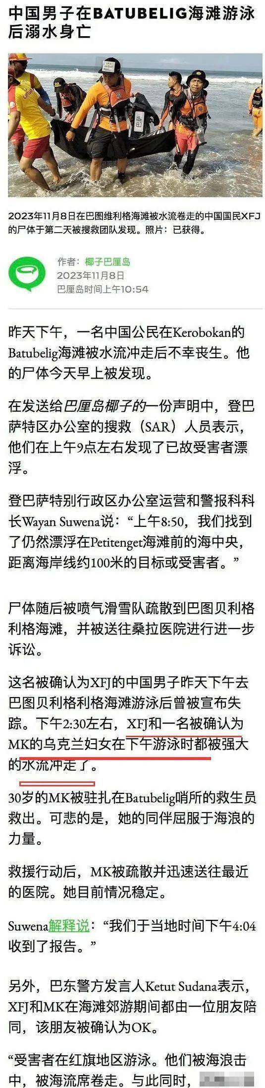 據解釋,原因是他們在海灘游泳時被海浪沖走,卡琳娜成功獲救,而仲尼不幸未能救回,最后溺水死亡。