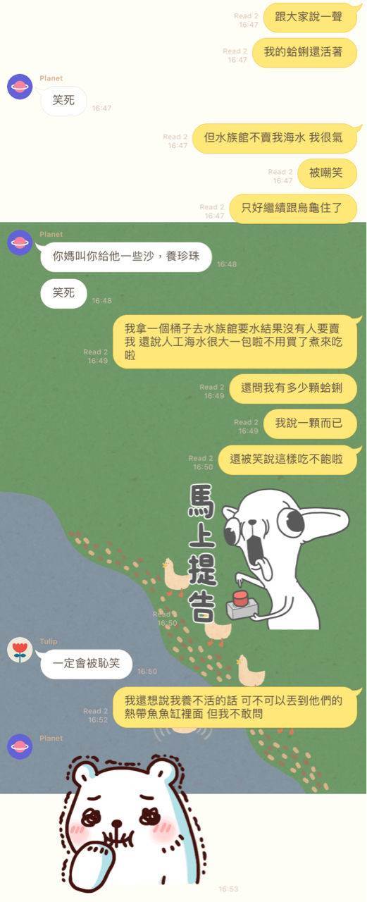 回家後為了新寵物原PO也認真爬文,發現養蛤蜊需要用海水,于是她也趕快拎著桶子跑到水族館要買海水,結果不僅處處碰壁還被嘲笑「只養1顆吃不飽」。不過如今蛤蜊在沒有海水的情況下已經順利活過3天,原PO打算下班後再去到熱炒店求救,同時她也細心做紀錄,「我每天都會把麻辣火鍋抓起來聞,看看有沒有臭掉,但今天還有觀察到它在呼吸、大便,應該是活得不錯。」