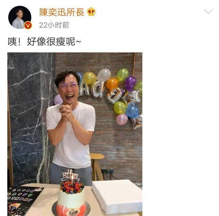 今天是陳奕迅的四十六歲生日,他本人也在今天凌晨的時候發布了一條社交動態,可能是發自拍的時候發現自己變瘦了:「咦,好像很瘦呢」。粉絲則開心回復說:「夠準時哦,也確實夠瘦的,還是要多吃點,不然怎麼叫胖陳」,蛋糕上堆滿了草莓,藍莓和桑葚,裙邊則是粉色的,上面寫著Eason的英文名。一看就很有營養,非常美味。后面的背景墻上粘著彩色的氣球,非常有過生日的氣氛。陳奕迅本人雙手合拳笑的像個孩子,瞇起來眼睛都不見了,看起來精神狀態非常好,壽星的笑容真的很有感染力,讓人看著都被熱鬧的氣氛影響,忍不住開心起來。