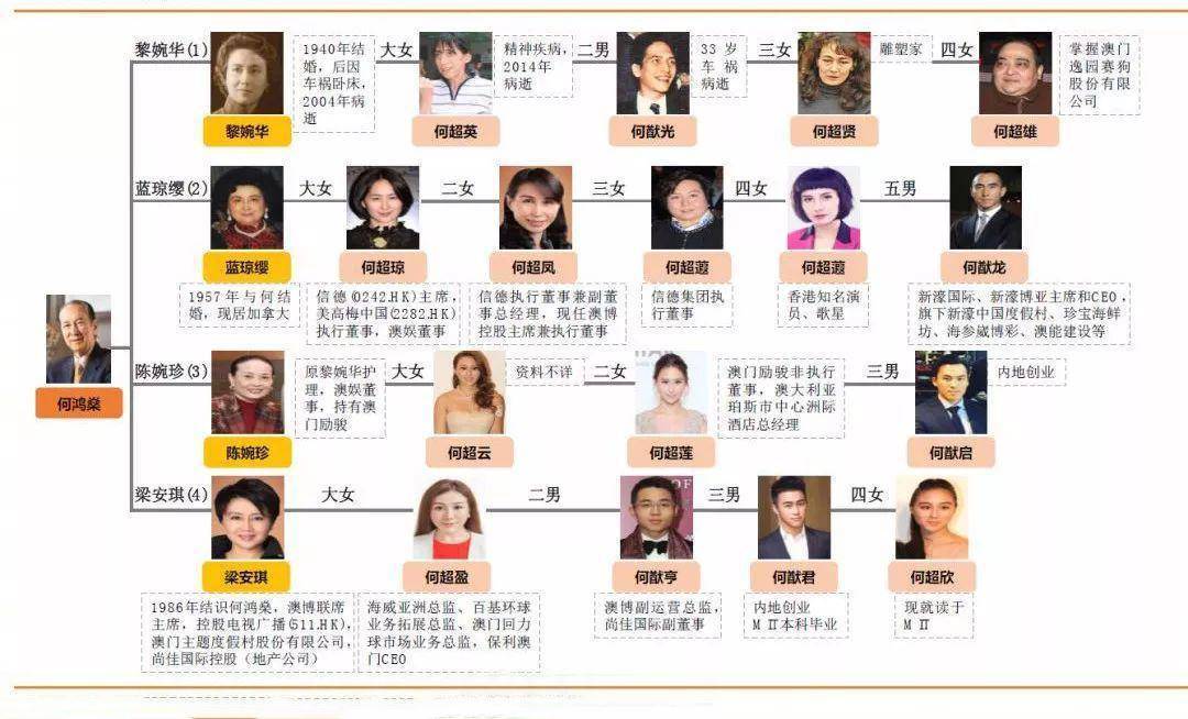 自賭王離去,何家的新一代「掌門人」變成了賭王二房的長女何超瓊,「副掌門」從目前來看也落在了二房身上,是二太藍瓊纓的獨子何猷龍。